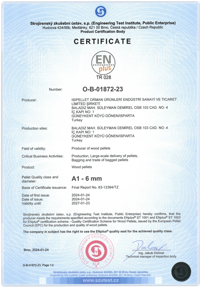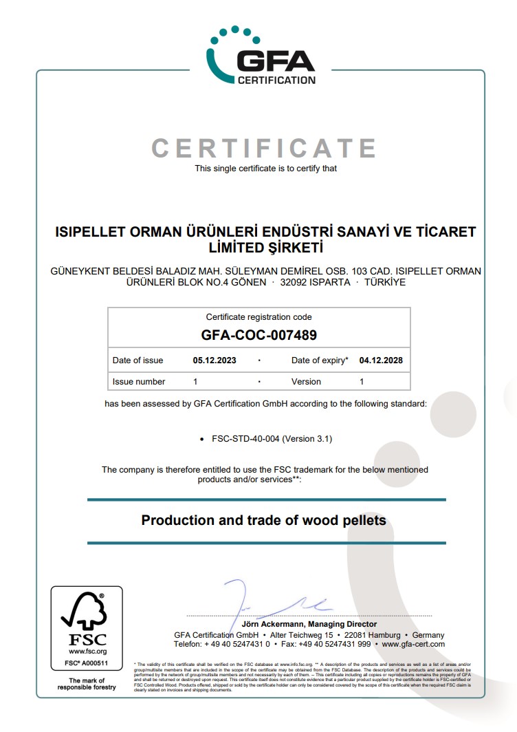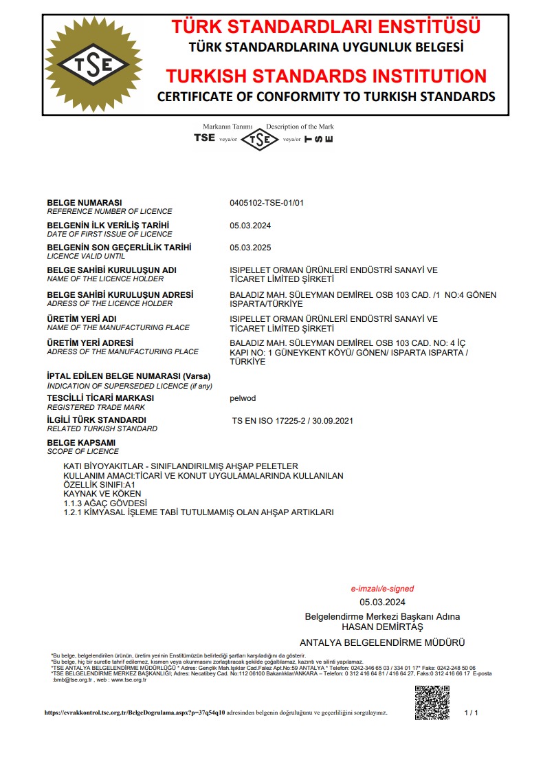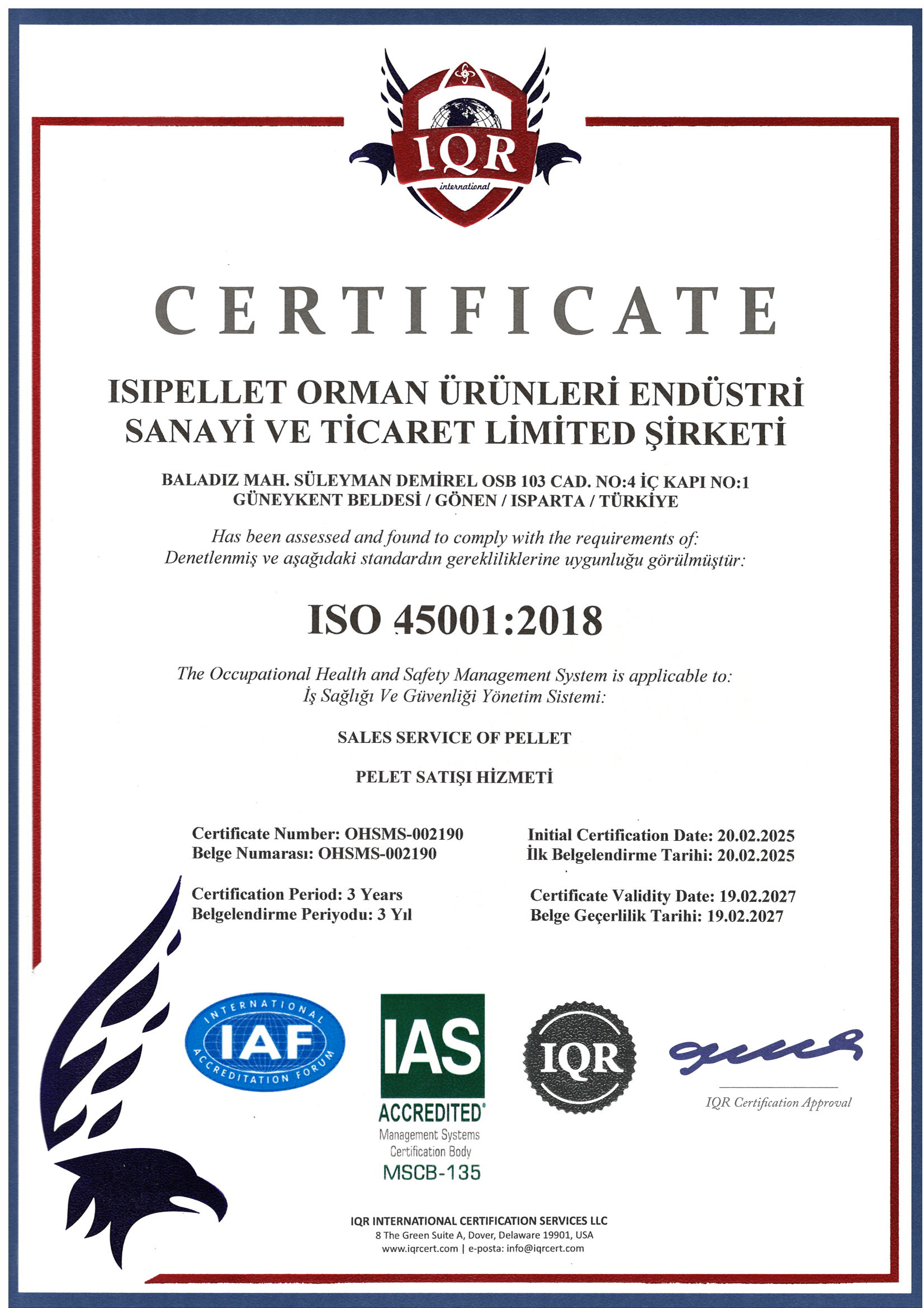 Üretim aşamalarında ISO 9001 ve ISO 14001 sertifikalarımız ile kaliteli pelet üretiyoruz.